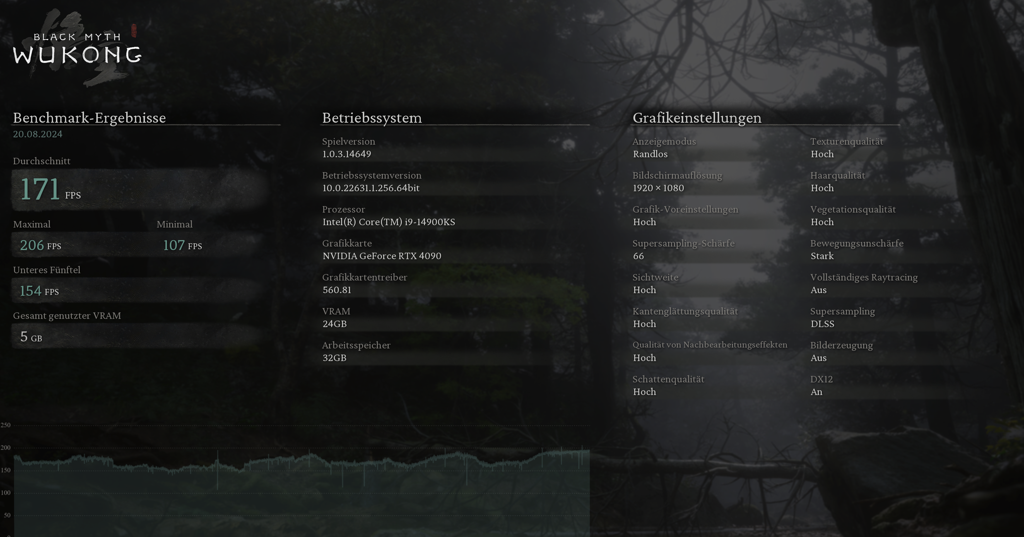 Du hast noch nen alten GPU Treiber (560.70 statt 560.81) und die Bewegungsunschärfe ist bei dir auch aus und soll eigentlich auf "stark"Magna 79 schrieb:Black Myth: Wukong – 1.920 × 1.080, „Hoch“, Upscaling 67: 55