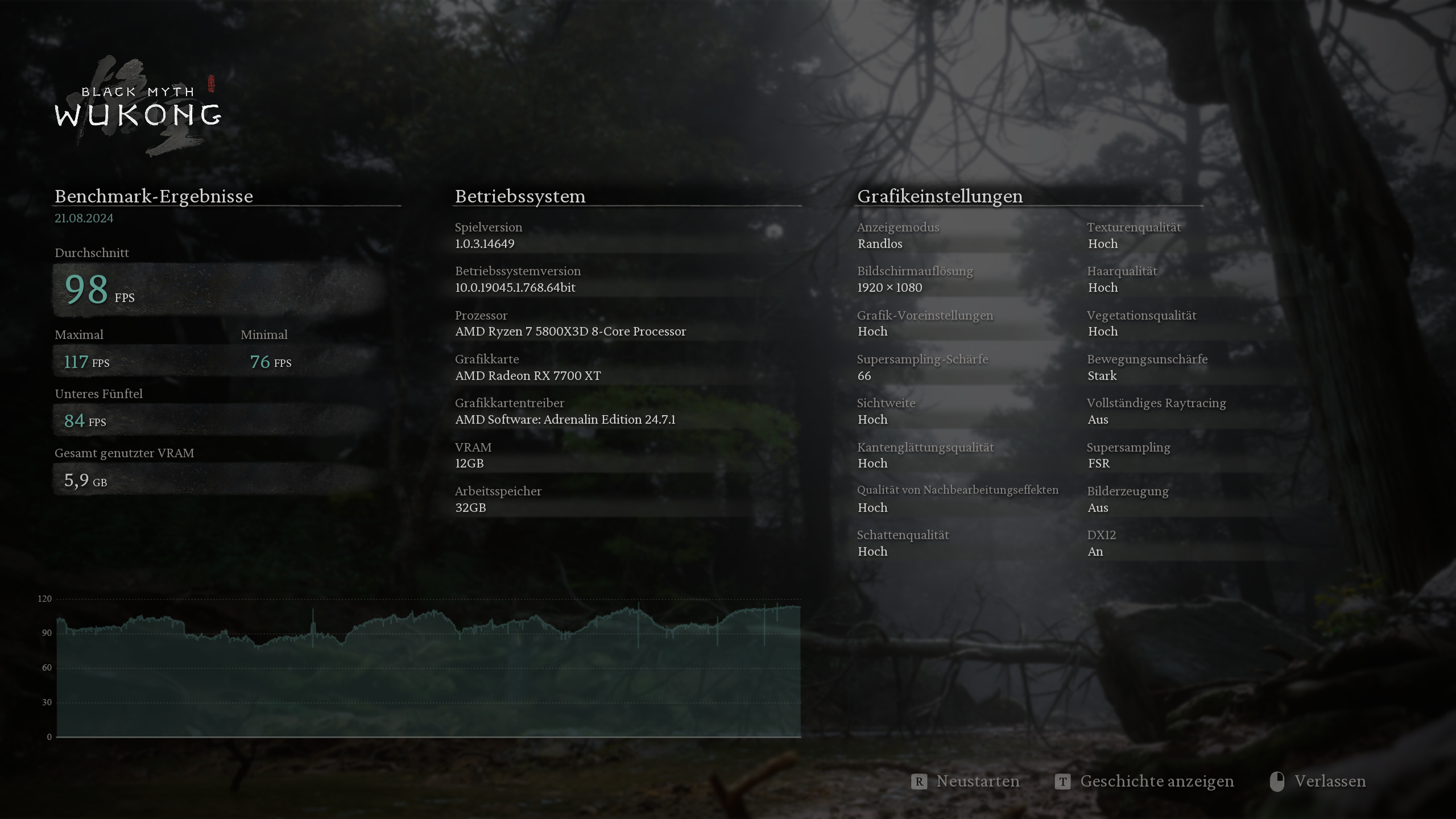 Black Myth: Wukong – 1.920 × 1.080, „Hoch“, Upscaling 67: 111