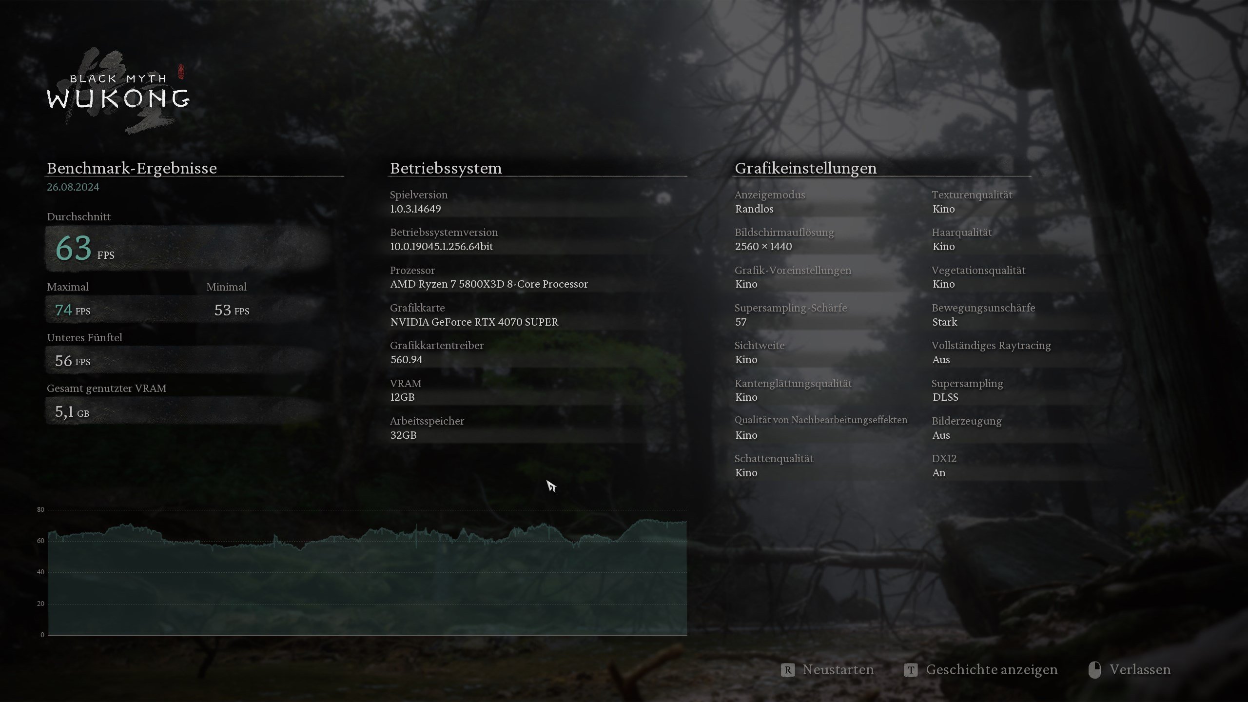 Black Myth: Wukong – 2.560 × 1.440, „Kino“, Upscaling 58: 55