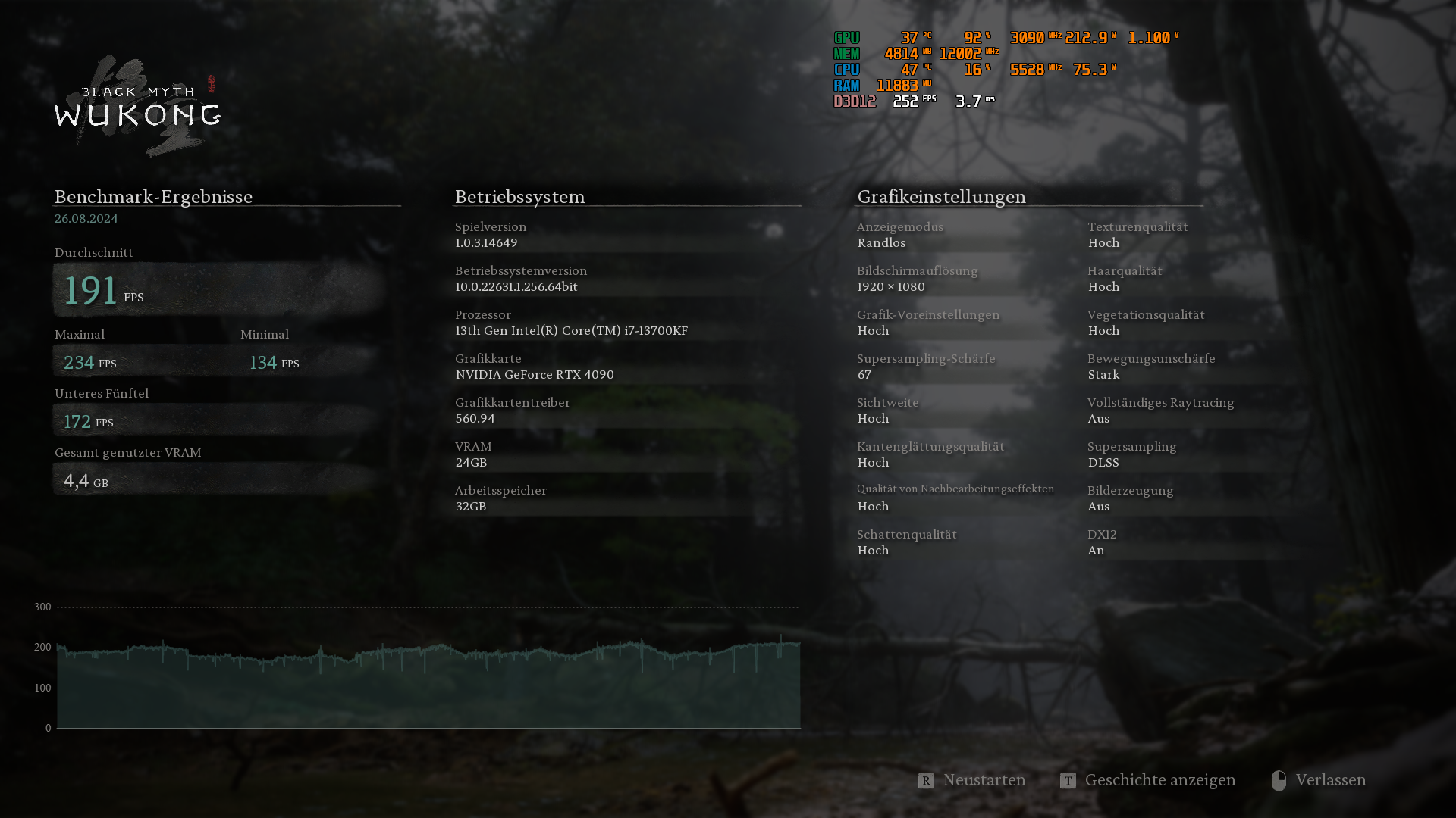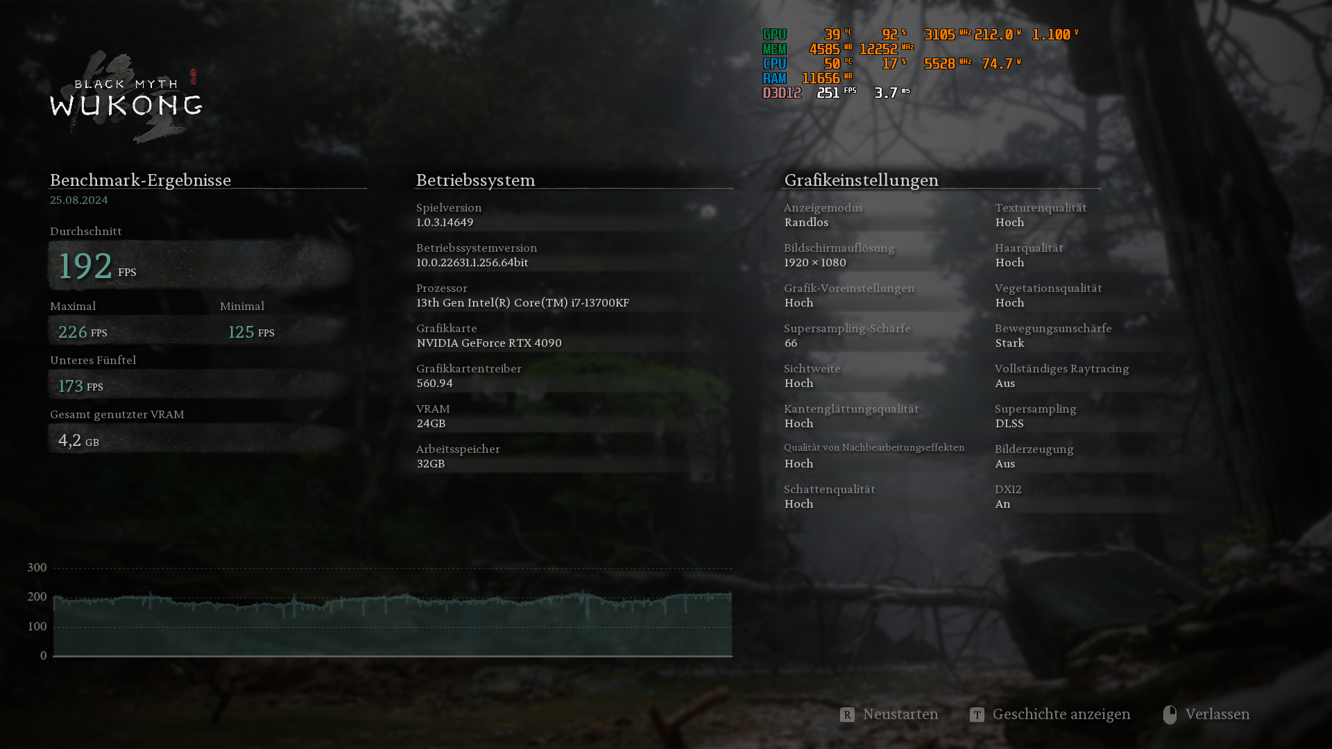 Black Myth: Wukong – 1.920 × 1.080, „Hoch“, Upscaling 67: 176