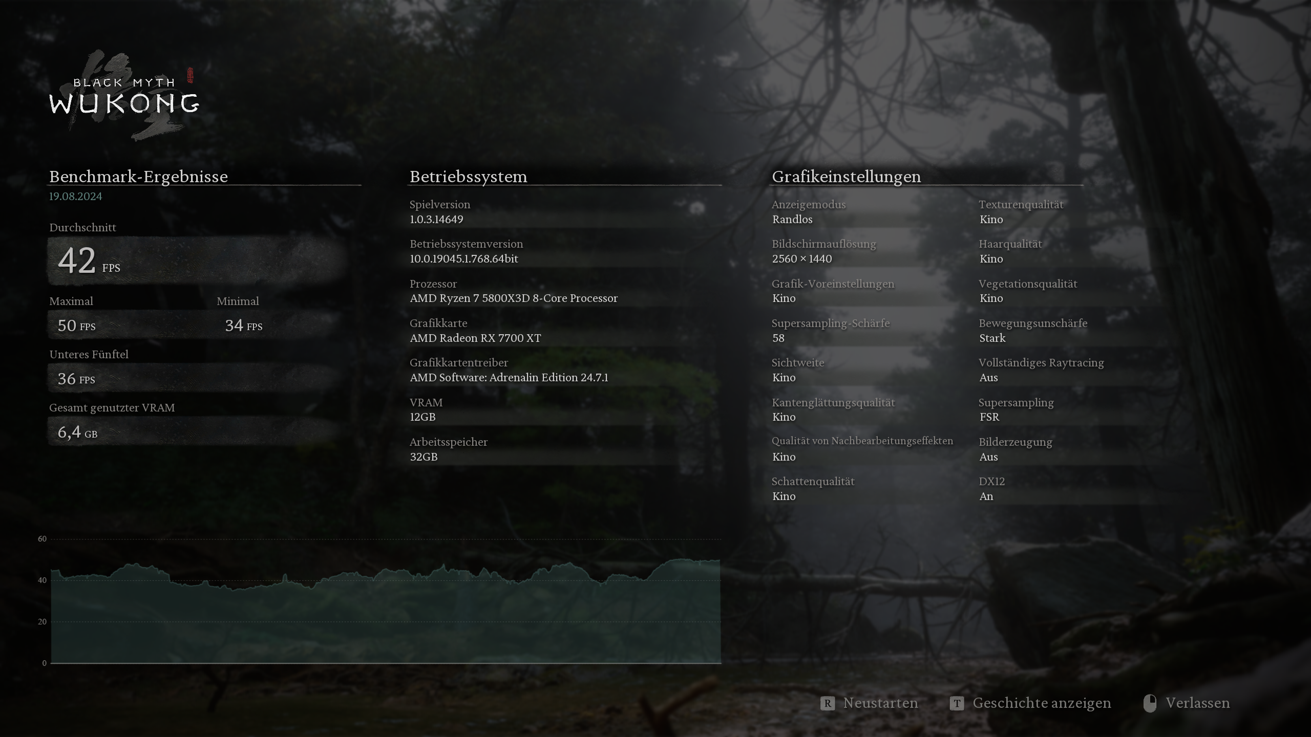 Black Myth: Wukong – 2.560 × 1.440, „Kino“, Upscaling 58: 62