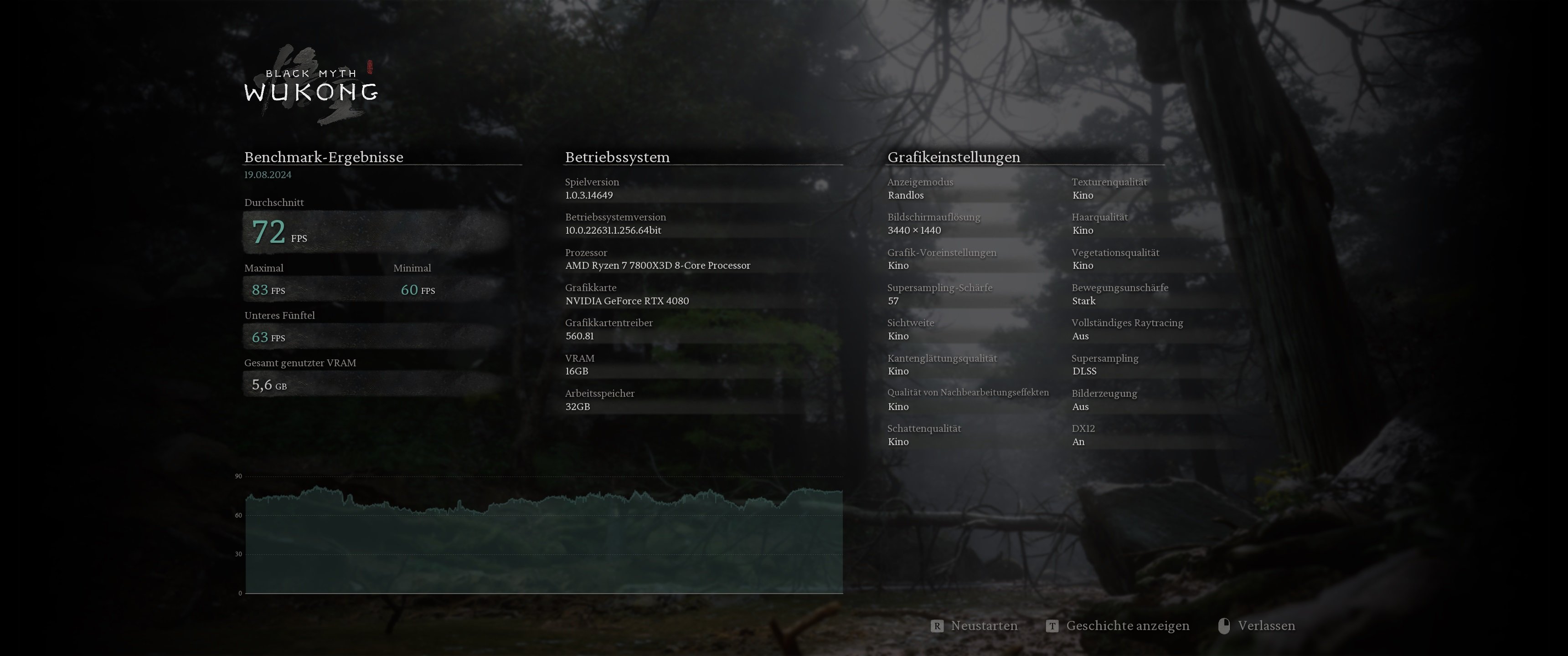Dazu noch 3.440 × 1.440, „Kino“, RT + FG Upscaling 50, falls ihr das mit aufnehmen möchtet