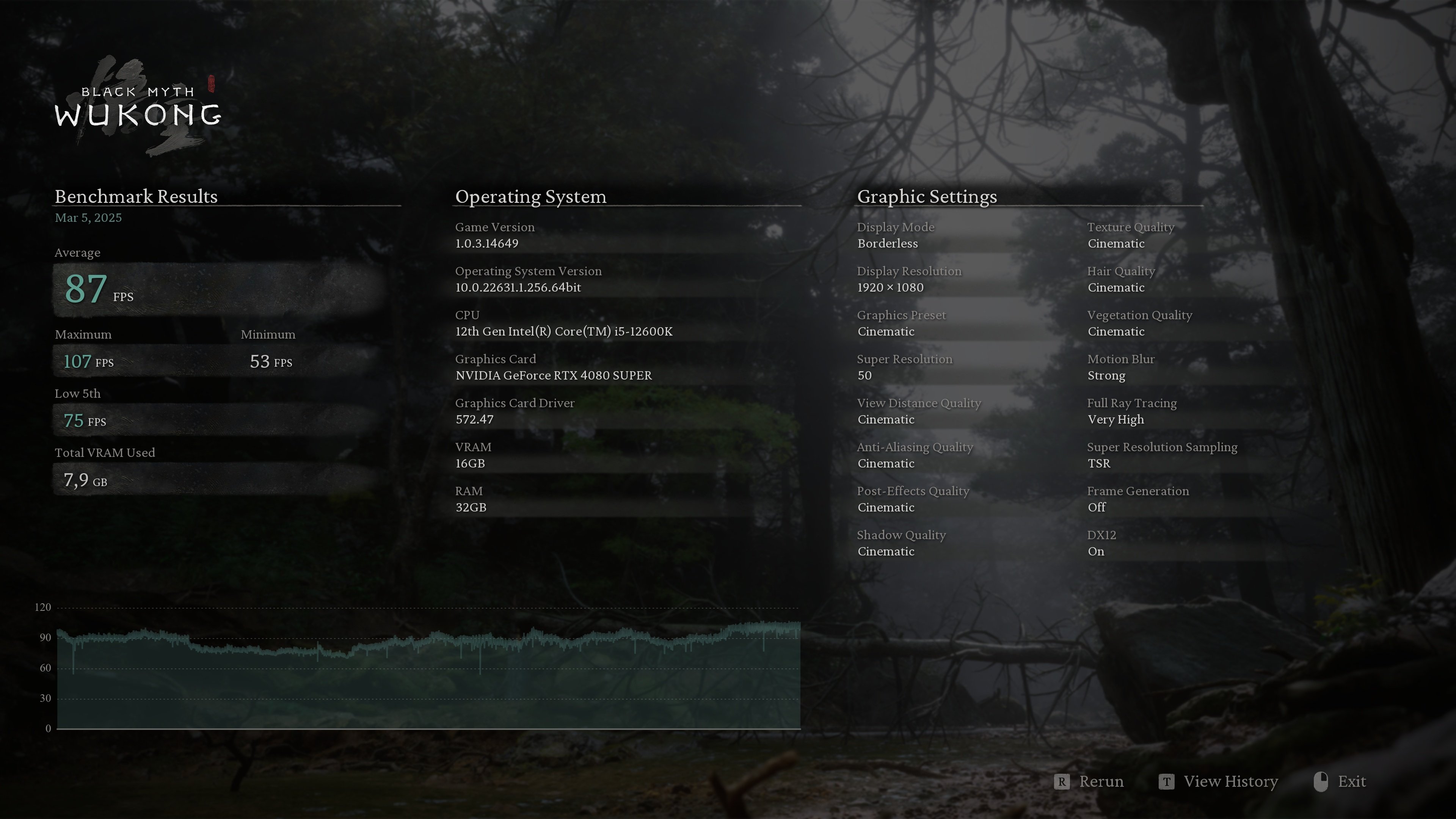 Black Myth: Wukung war dahingehend in meinem 1080p-Run auf dem 12600K wie folgt eingestellt: