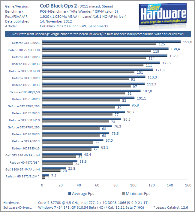 Systemanforderungen für niedrige Details in 1920x1080, FXAA ein, Schatten Niedrig