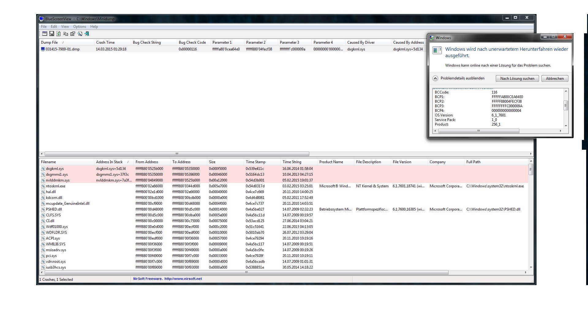 Bluescreenview : Error 116 nvlddmkm.sys. dxgkrnl.sys dxgkrnl.sys die fehler wurden angezeigt.