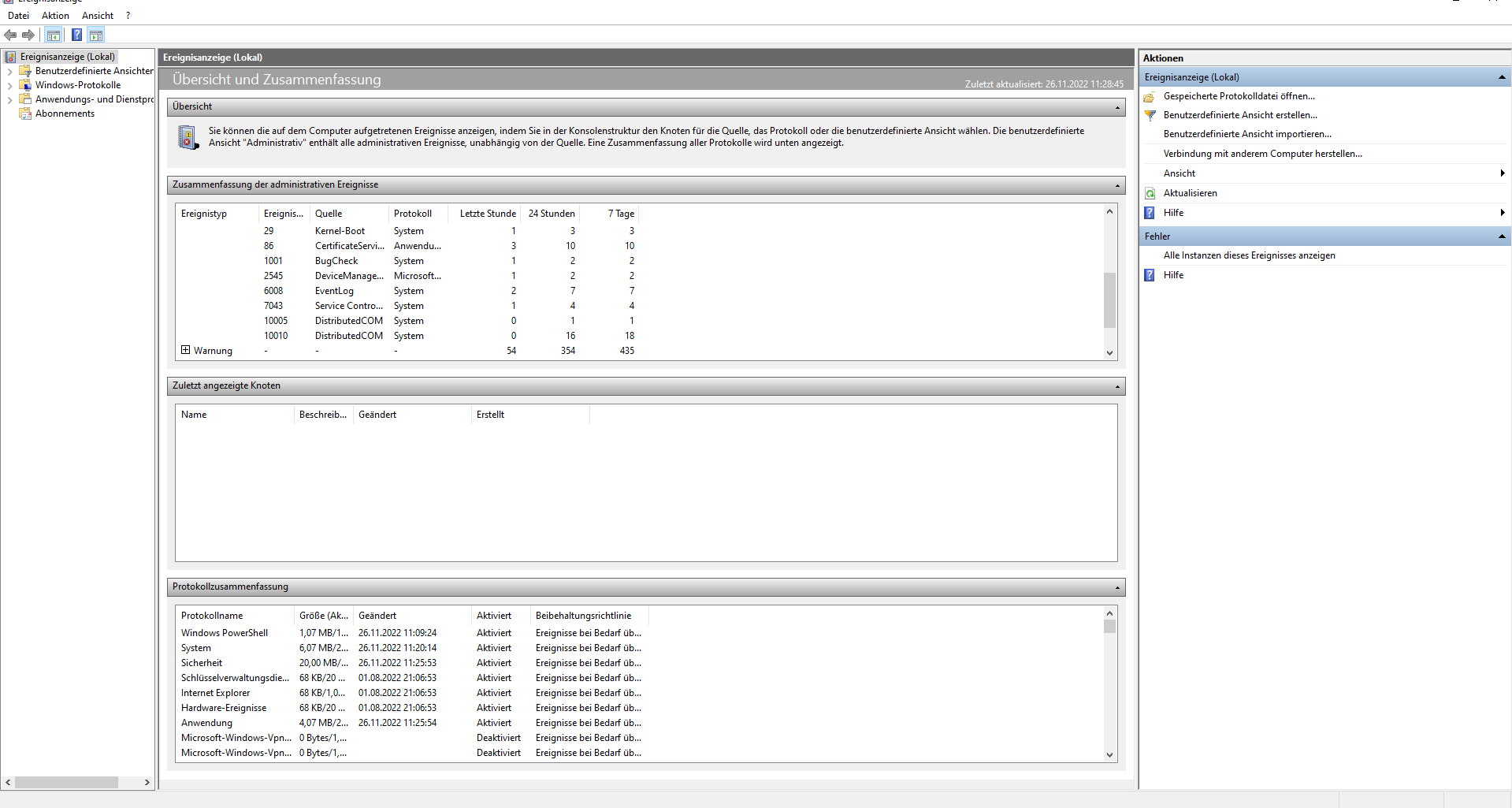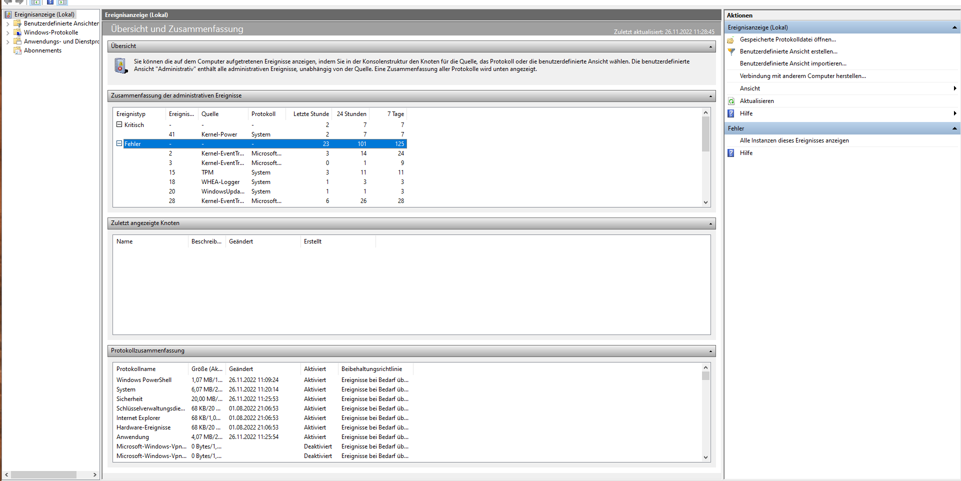 Anhand vom Zeitstempel kannst du in der Ereignisanzeige alle Fehler, Warnungen und Hinweisen nachgehen die den selben haben.