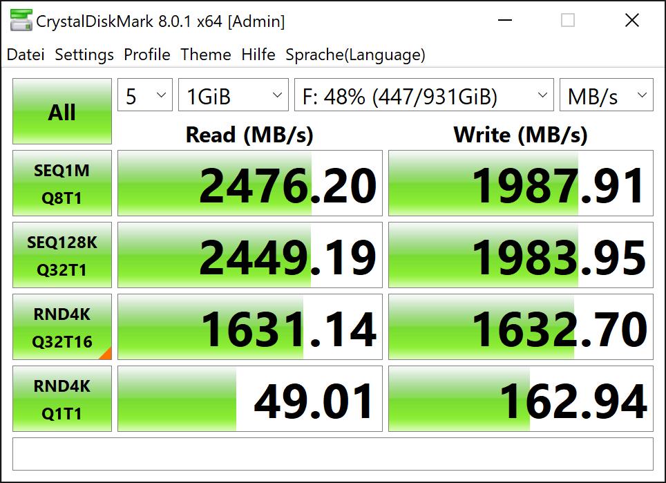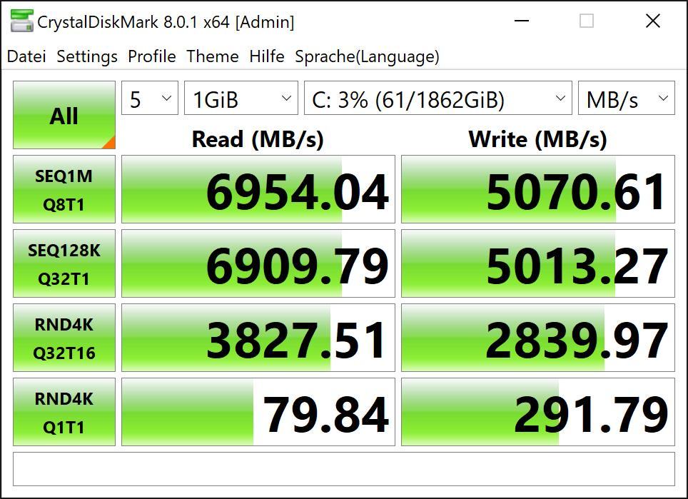 Ich finde bei solchen Tests immer interessant wie hoch die Lese- und Schreibraten am Ende in der Praxis wirklich sind. Viele verlangen nach PCIe 4.0, weil 3.0 viel zu lahm für NVMe SSDs sei, während ich es viel lieber gehabt hätte wenn z.B. bei B550/X570-Boards die 4 Lanes für den M2-Port so aufgeteilt wären, dass zwei PCIe 3.0 SSDs dort mit voller Geschwindigkeit anbinden könnte (statt eine mit vollen x4 4.0). Jetzt kommt die SN850 mit satten 7GB/s Leserate daher, also auf dem Papier viel zu schnell für PCIe 3.0. Schaut man sich aber an, wie schnell das Teil am Ende wirklich liest (nämlich große Ordner von SSD auf RAM-Disk kopieren), schaffen selbst die schnellsten Modelle inkl. der Samsung-Pro-Reihe kaum mehr als 2GB/s. Die 7GB/s sieht man dagegen nur in synthetischen Tests, wo rein sequentiell gelesen wird. Sobald dort etwas random access reinkommt, fallen auch dort die Leseraten in sich zusammen.