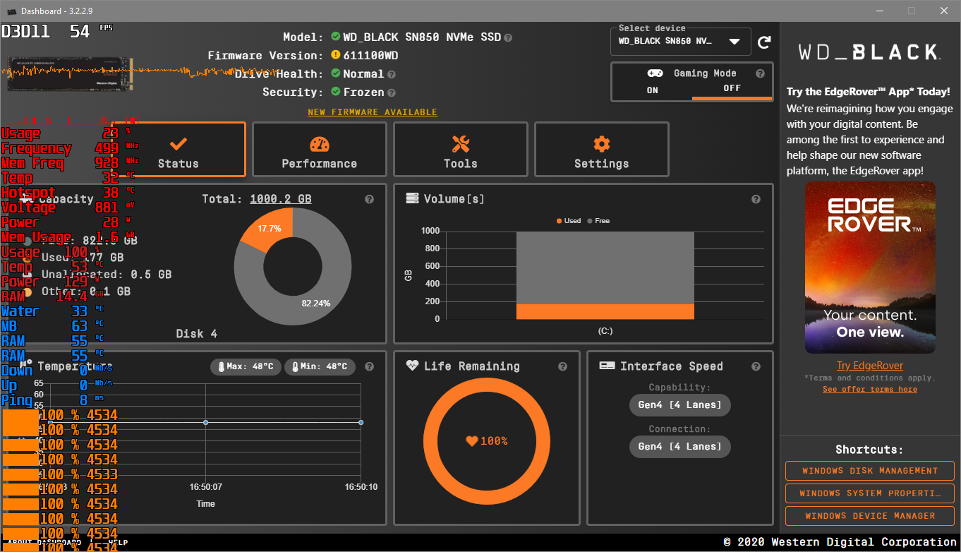 Das Firmware Update wird Live in windows eingespielt und bedarf nicht mal eines Neustartes... ich bin schwerst beeindruckt. (Ja. das ist meine System Platte)