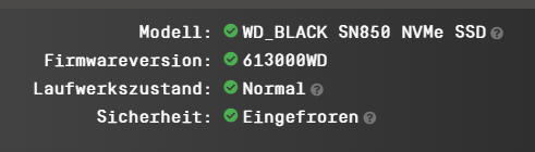 Ich habe die Firmware von Haldi heute auf die 2 TB SN850 geflasht. Vielen Dank dafür, hat problemlos geklappt. Die Modellzeichenfolge ist immer noch "WD_Black SN850 2TB".
