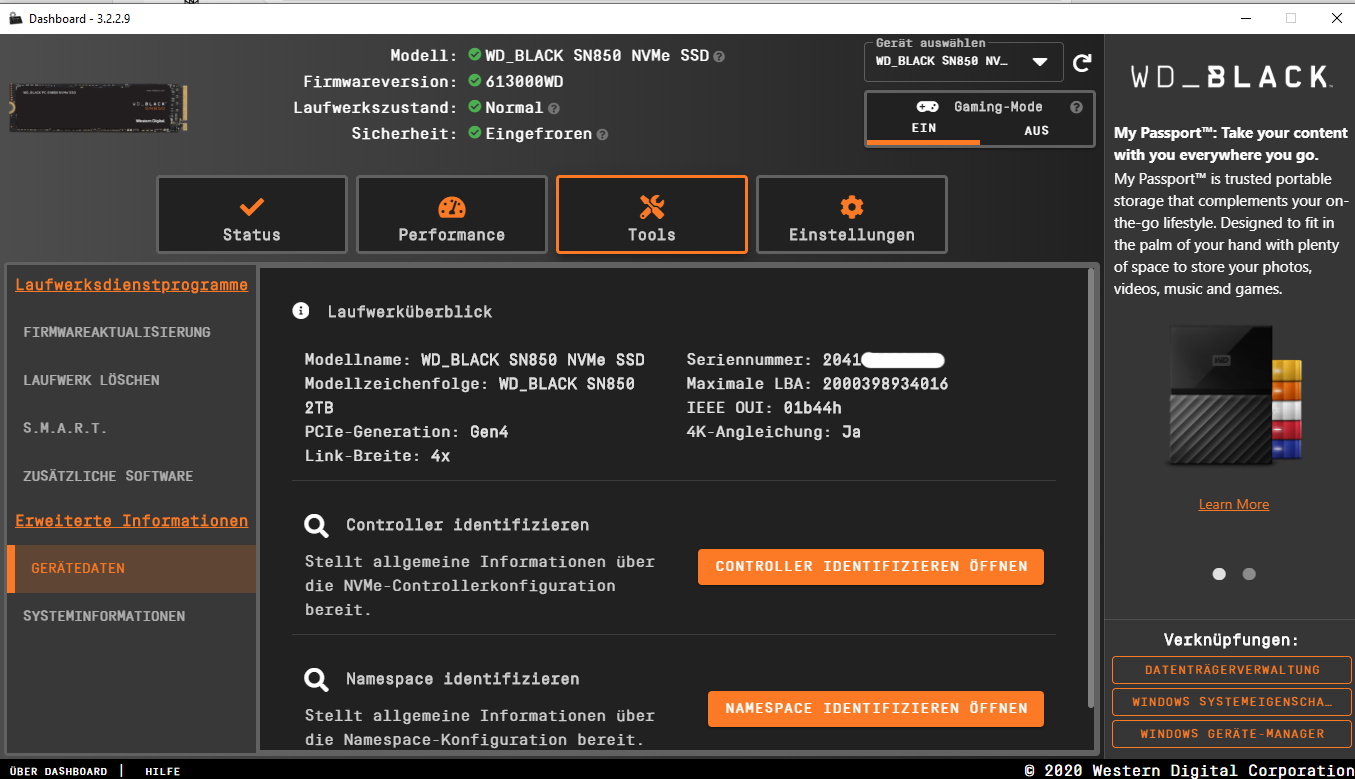 Im Gerätemanager steht immer noch WD_Black SN850 1TB