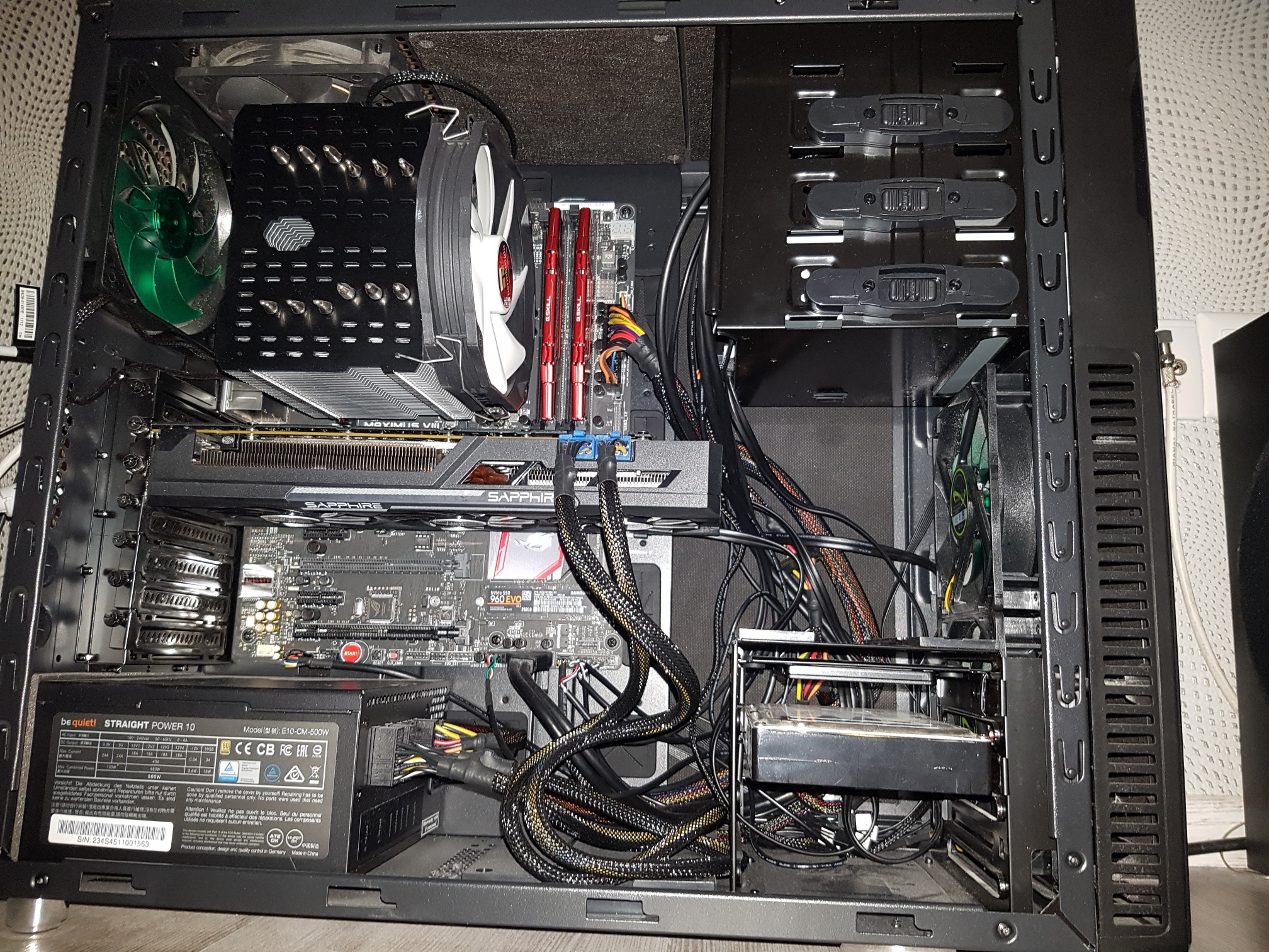 Dann schließe die Karte mal an beiden Strängen des BQ Netzteils an, also nicht nur an einem wie auf den Fotos.