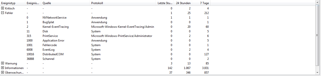 Ich kenn mich mit der Ereignisanzeige nicht wirklich aus. So wie ich das sehe, wird mir da kein Fehler angezeigt. Aber wie gesagt, ich hab keine Ahnung.
