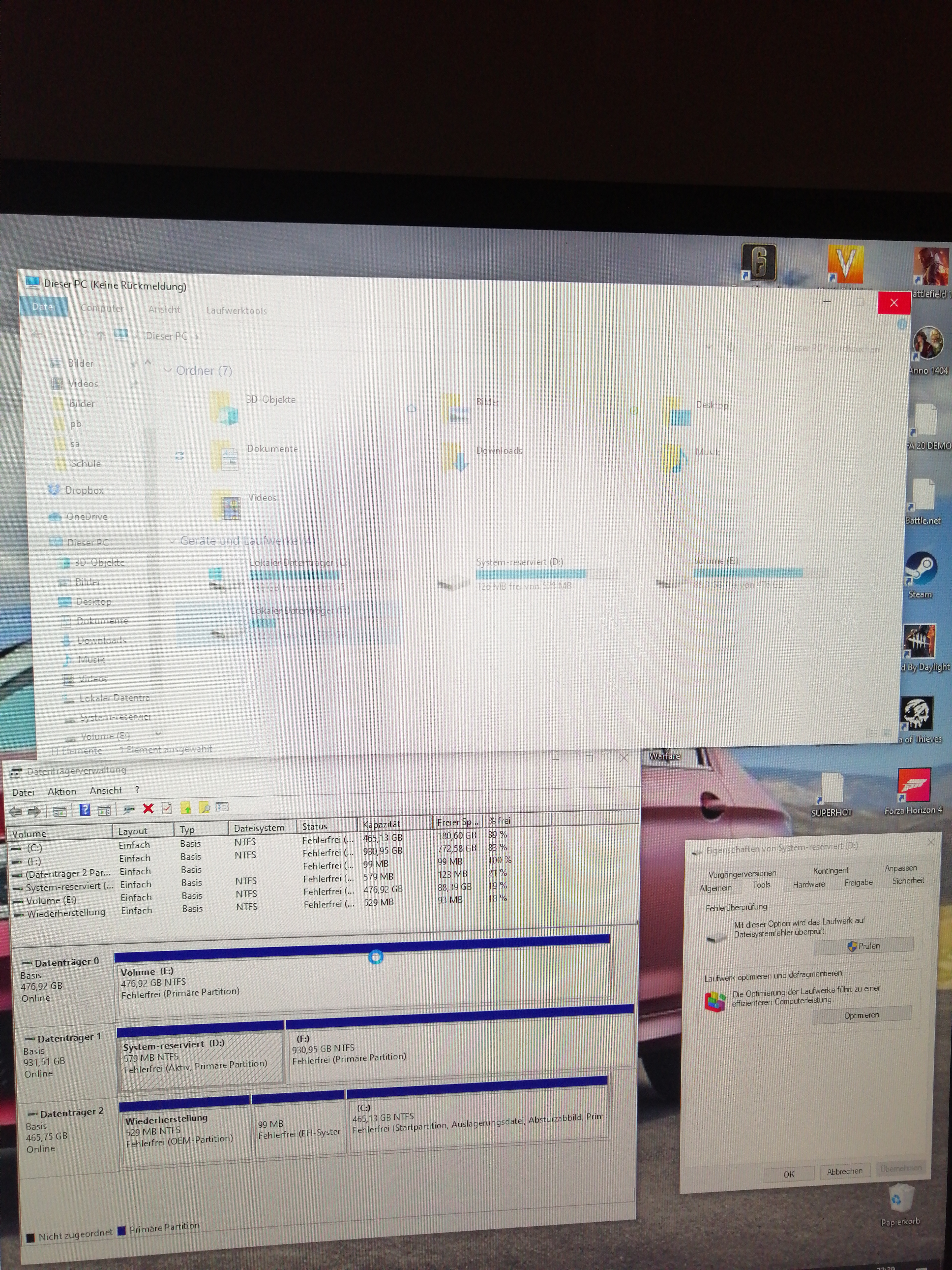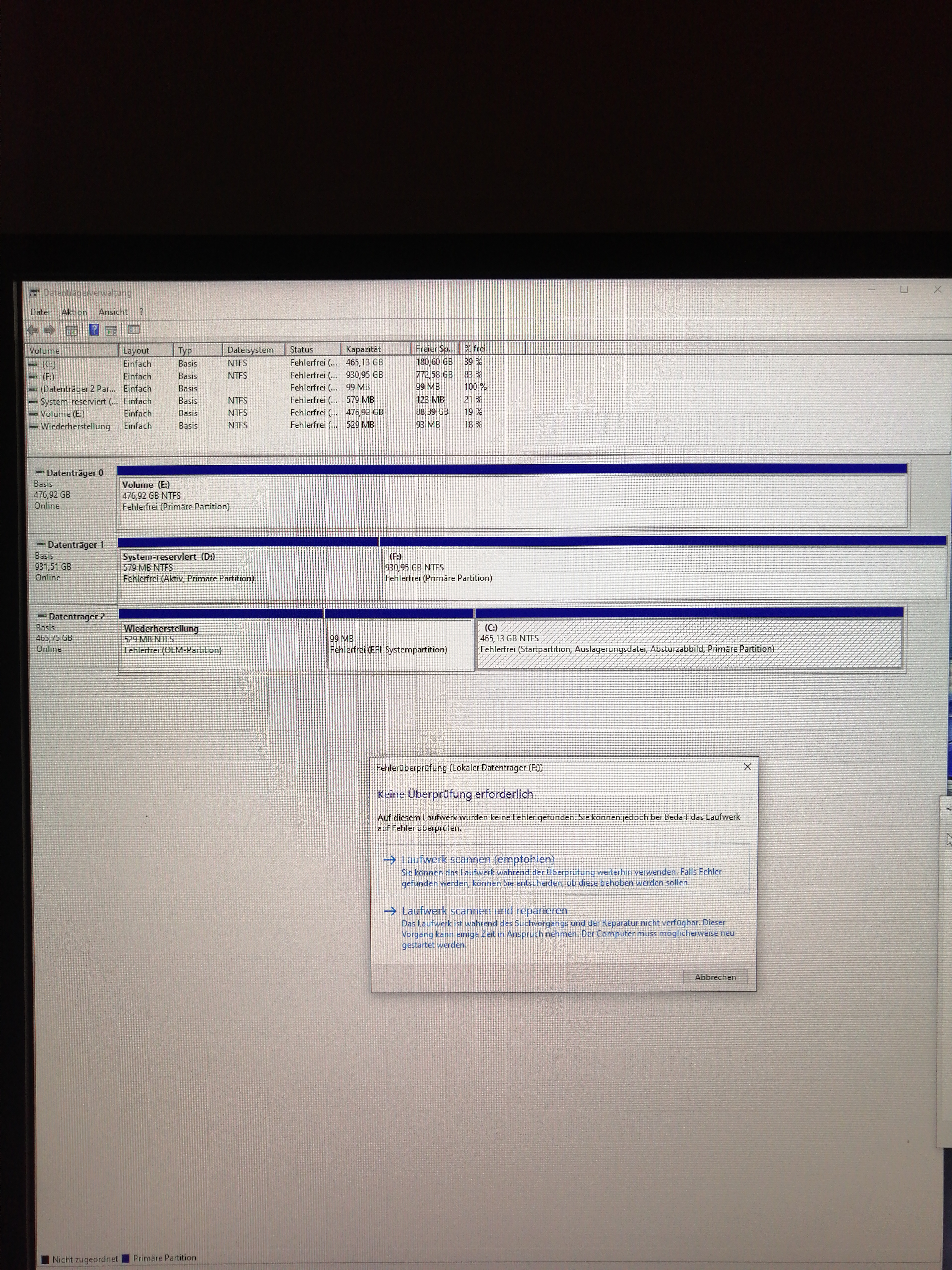 Soll ich auf Laufwerk reparieren drücken bei "system reserviert d" und "lokaler Datenträger f"?