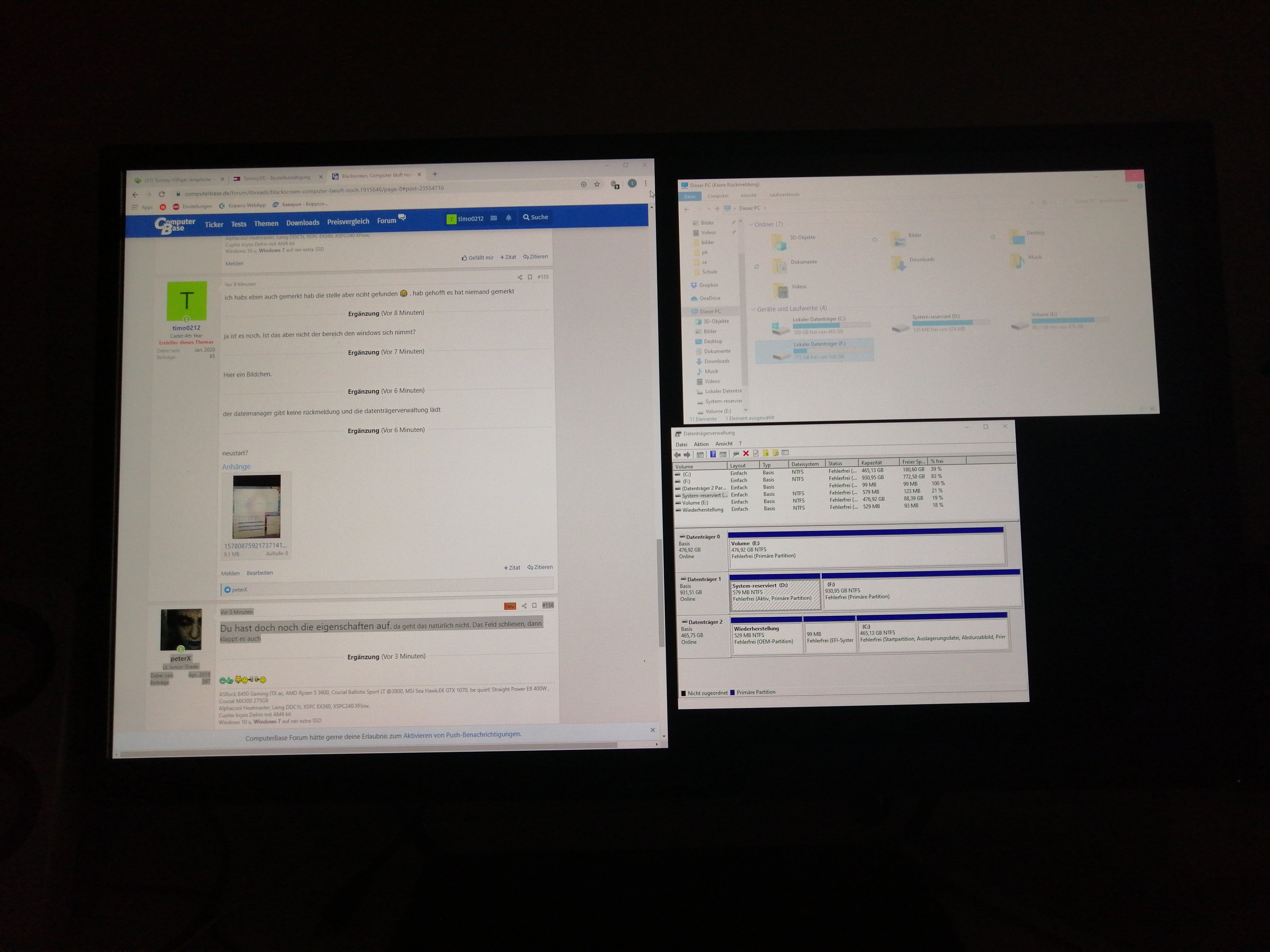 der dateimanager gibt keine rückmeldung und die datenträgerverwaltung lädt