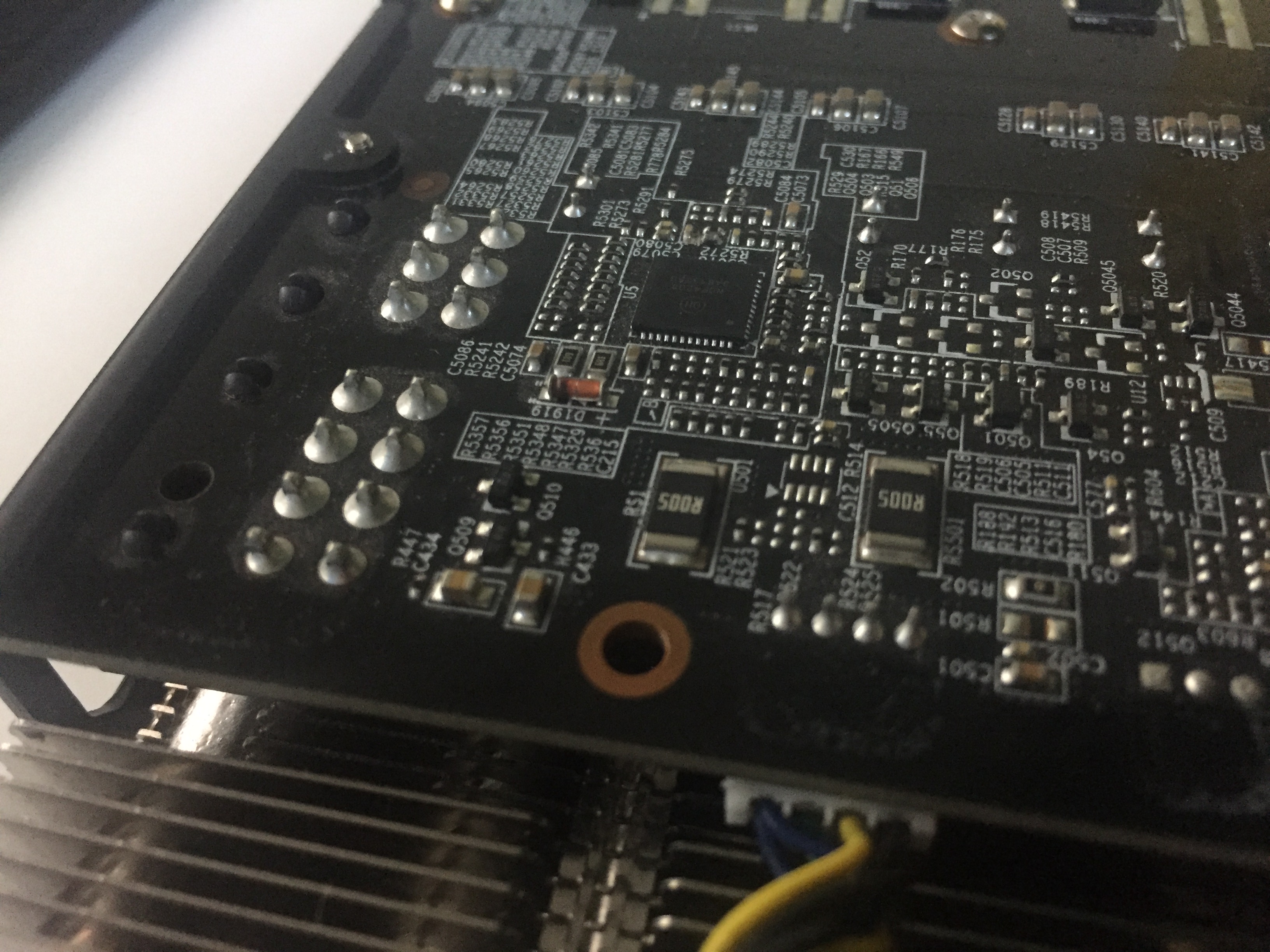 -Auf der Rückseite ist an einer der ich denke es sind Transistoren ein kleiner schwarzer fleck.