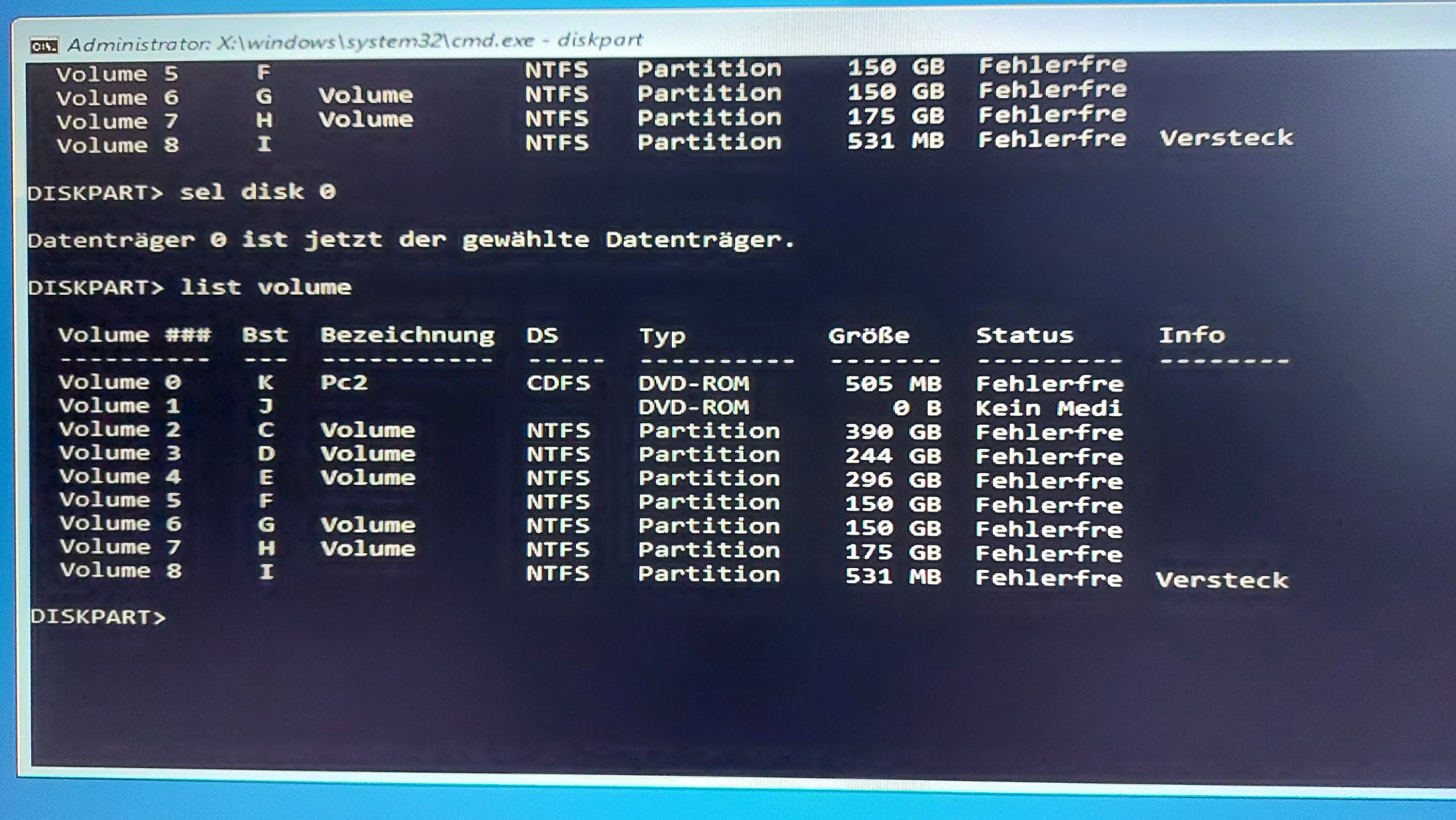 Hab mir jetzt an meinem Linux Laptop einen bootable USB Stick mit der aktuellen Win 10 Iso von der Windows Seite gemacht und konnte per Uefi in die Installationsmaske von Windows booten. Keine der Problembehandlungen (Starthilfe, Updates deinstallieren, System wiederherstellen) funktioniert, es werden nur Fehlermeldungen ausgeworfen. Über die Shell bekomme ich mit "bootrec /rebuildbcd" zwar meine C Partition als Windowsinstallation erkannt, allerdings kommt danach "Das angeforderte Systemgerät kann nicht gefunden werden".