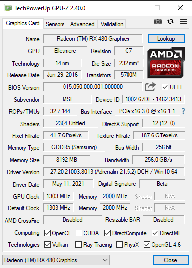 - Grafikkarte: MSI RX480 Gaming X 8 GB