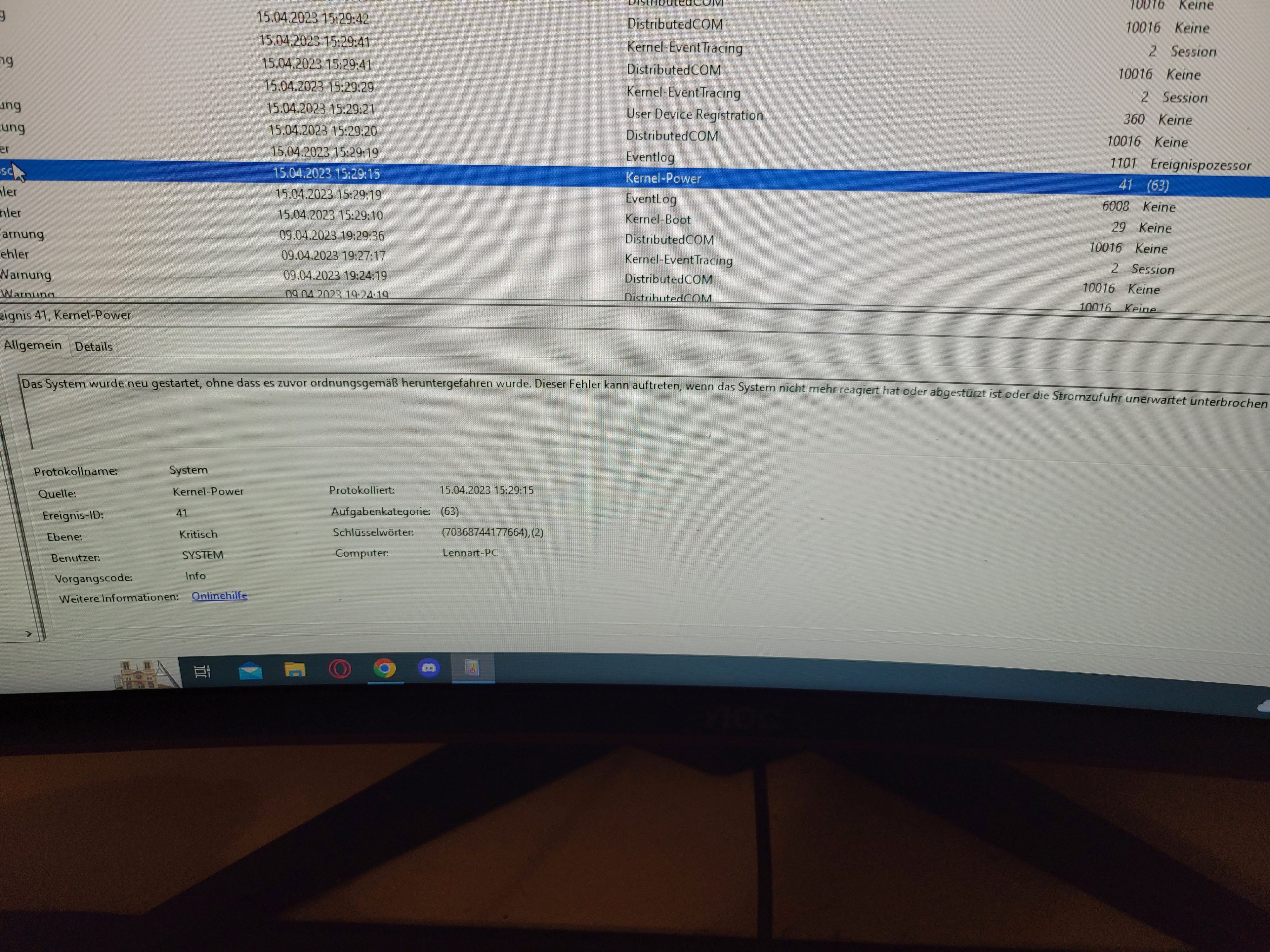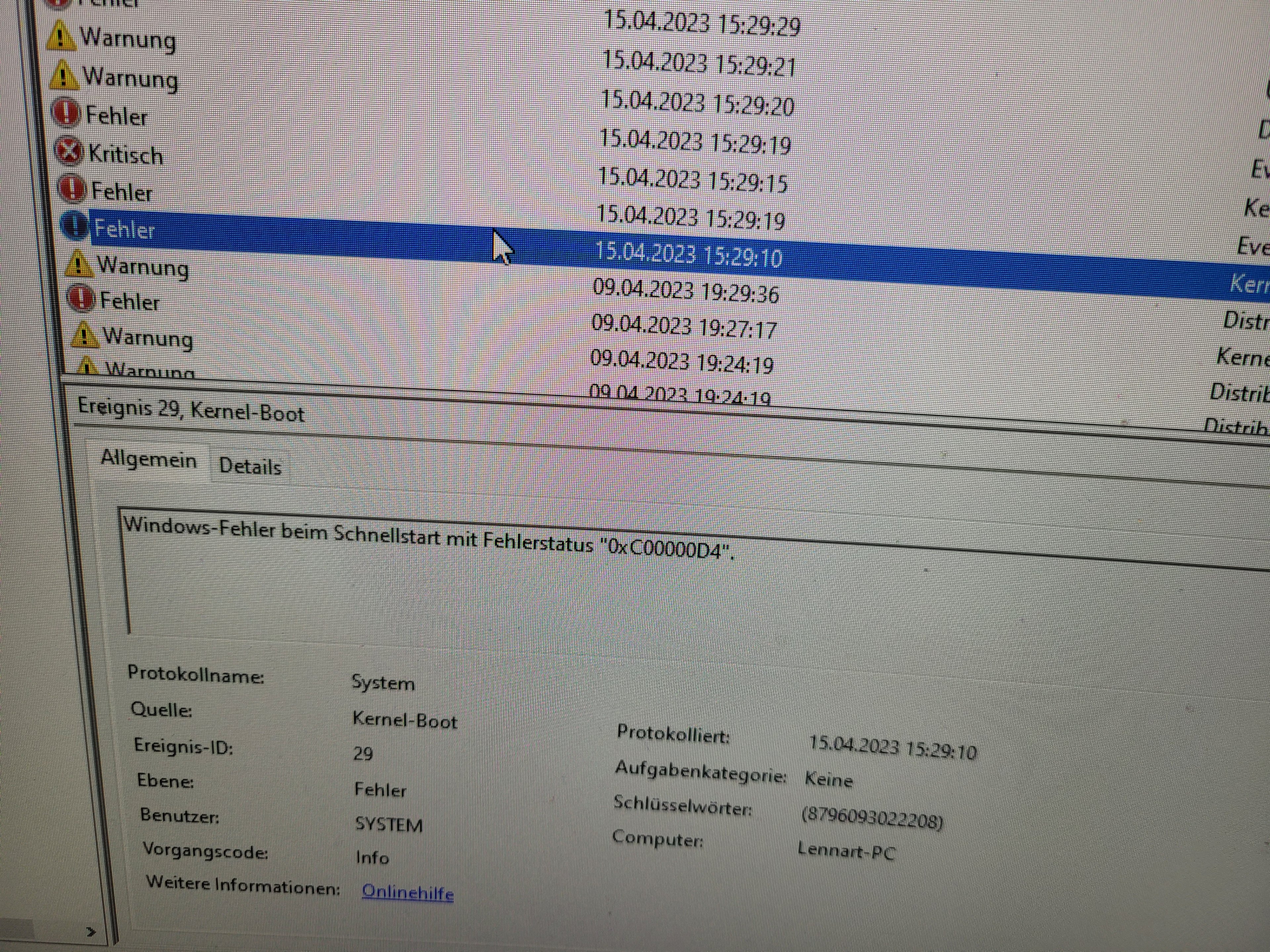 Hallo, seit neuestem habe ich ein Problem mit meinem Pc wo ich wenn ich meinen Pc nutze ich ein Blackscreen bekomme und nach diesem kurzen Blackscreen direkt mein Pc neugestartet wird. Ich komme dann entweder wieder in den LoginScreen oder ein blauer WindowsScreen mit "Wiederherstellung"wird angezeigt. Bei dem Wiederherstellungsscreen steht dann dass Windows nicht richtig gestartet worden sei und ich kann dann entweder auf Pc neustarten oder Problembehandlung drücken. Diese Blackscreens mit Neustarts kommen in etwa 3 minütigen Abständen. Über Hilfe würde ich mich sehr freuen. Vielen Dank schon mal im Vorraus!