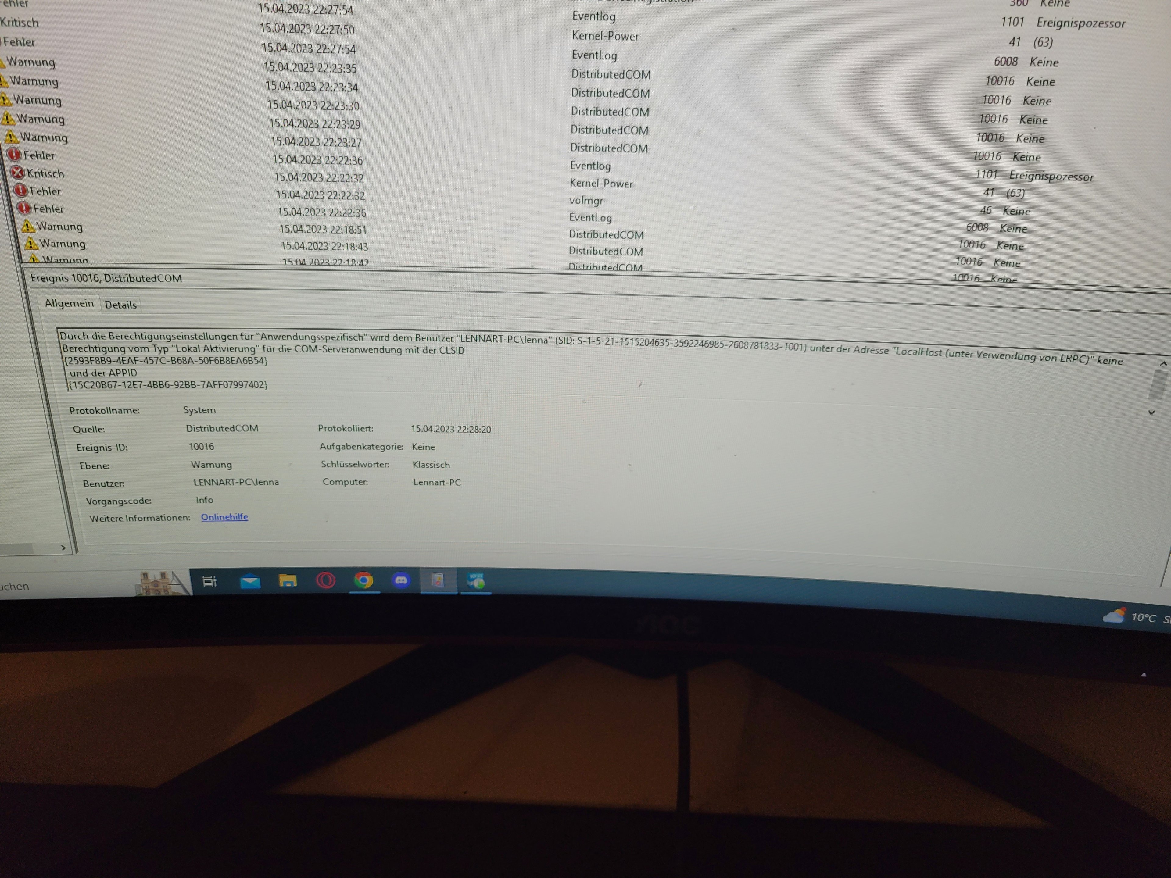 Ryzen 3600X , GTX 1050Ti , 16 GB Ram , 500 GB ssd, ich nutze den Pc indem ich Programme starte z.B. Discord, Chrome etc