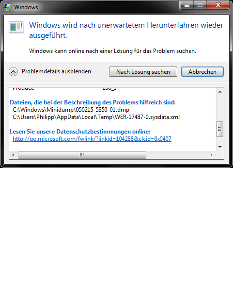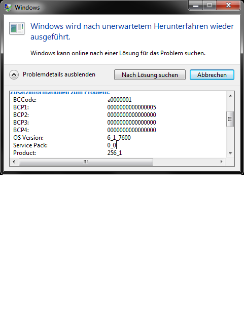 - Überprüfung der Ereignisanzeige (unter System) --> Kernel Power 41 ????