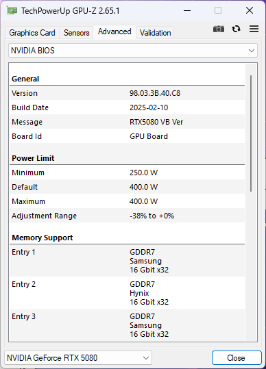 - Übertaktung VRAM: Slider Memory Clock auf +2000 (das können alle 5080 stabil ab. ggf. mal testen, ob bisschen weniger besser funktioniert, weil du schlechten VRAM erwischt hast, der schnell in Fehlerkorrekturen läuft. Ich erziele mit +1.850 i.d.R. höhere Scores)