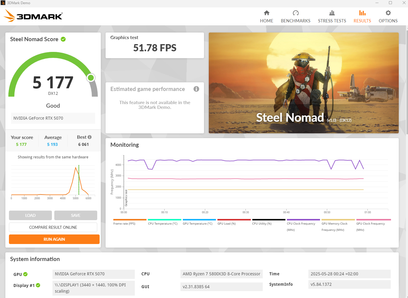 3D Mark Time Spy: 24.798 (etwas mehr als eine 4070 TI Super Default)