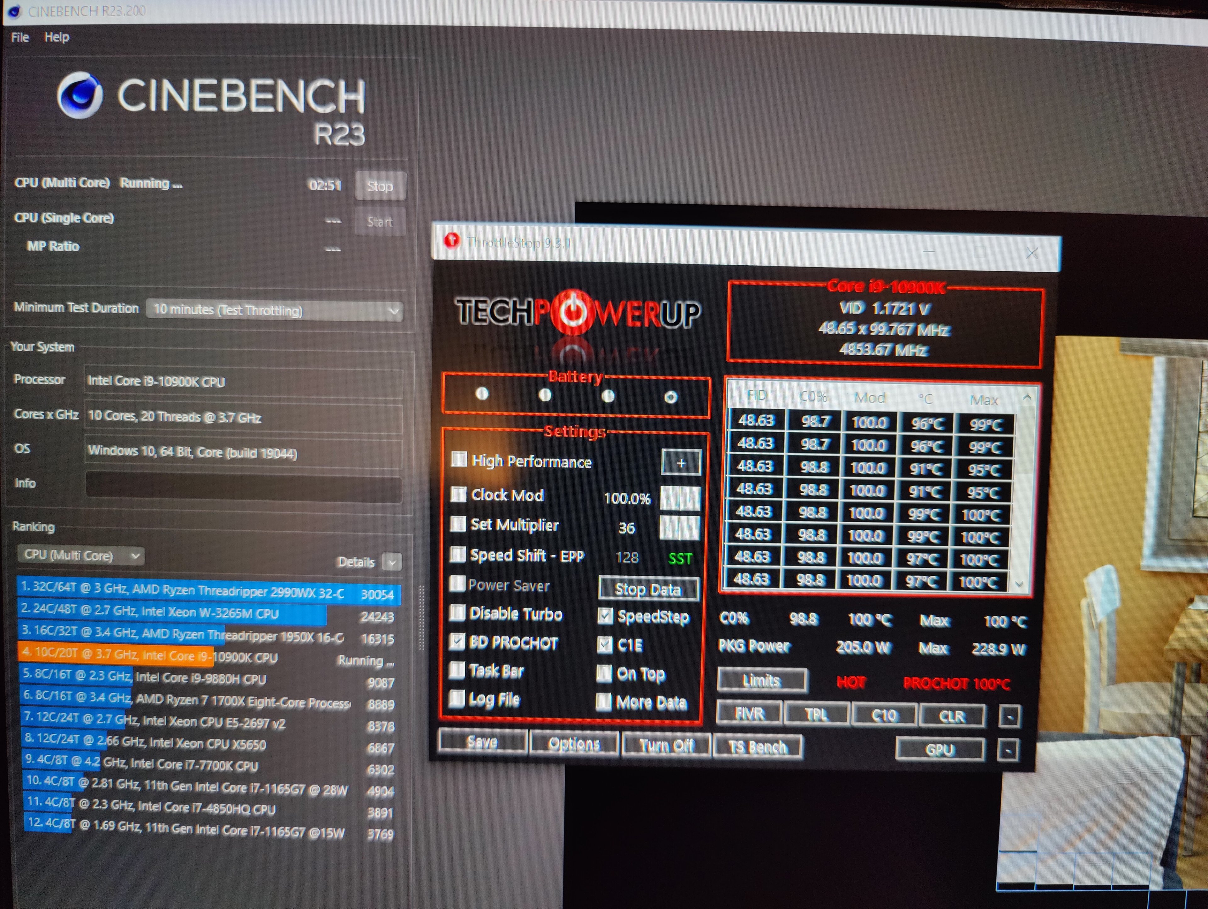 Oder über 200w CPU Verbrauch nach 7 Minuten Cinebench.