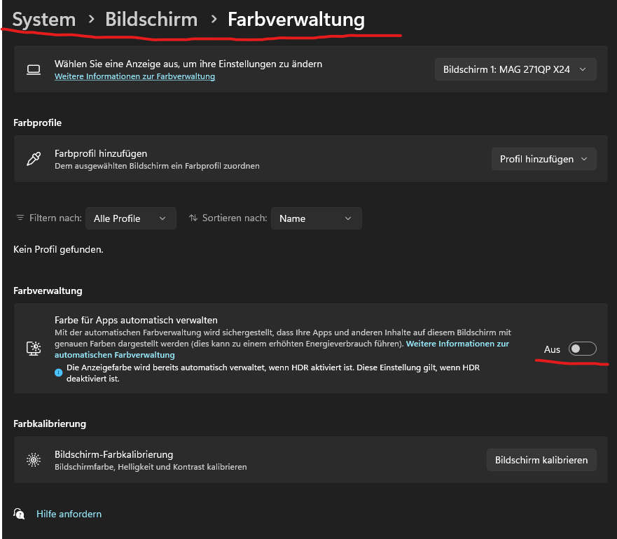 Wenn ich jetzt den Monitor mit dem Laptop verbinde ist das ganze Bild blass und unscharf, ich habe in den Einstellungen natürlich die richtige Auflösung und Hz eingestellt.