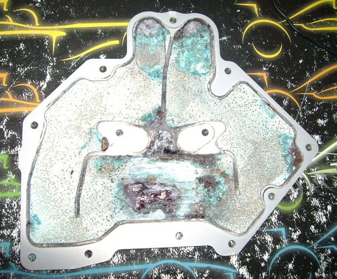 Hydroxyphosphonoessigsäure bildet mit Metallionen einen Komplex (es bindet sie sozusagen ab, es kommt zu keinen Reaktionen zwischen Kupfer- und Alukühlkörpern). Bilden sich durch viel Ionen viele Komplexe, bekommst du den Schlamm. Würdest du weniger KS in das destill. Wasser geben, würde das Wasser - nachdem als HPES-Moleküle, die mal vorhanden waren, abgebunden haben - nach und nach deine Kühler auflösen, zuerst die Alukühler (bildet als unedleres Metall die Opferanode im Kreislauf).