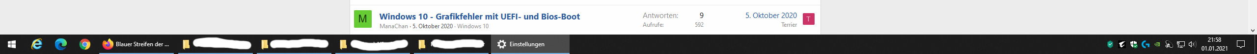 Blauer Streifen der Ordner in Taskleiste brennt sich ein und soll weg