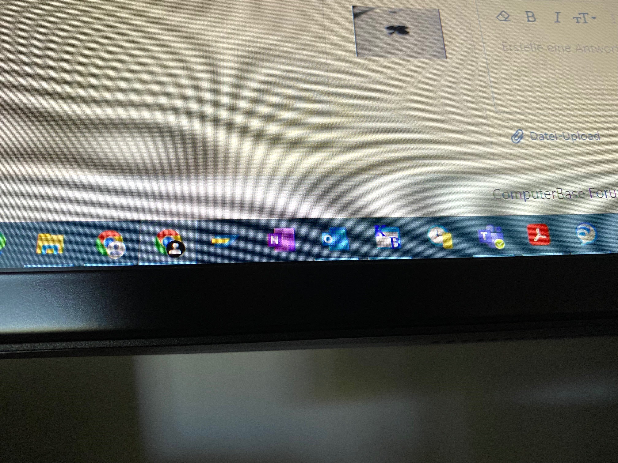 Der Monitor hängt an einem Arm direkt vor mir, sodass meine Augen sich auf Höhe des oberen Drittels befinden. Mein Problem ist nun, dass aus diesem Blickwinkel einige Pixelreihe unten abgeschnitten erscheinen. Bewege ich den Kopf nach unten, sodass ich gerade auf das untere Drittel des Bildes schaue, sind die fehlenden Pixelreihen wieder zu erkennen.