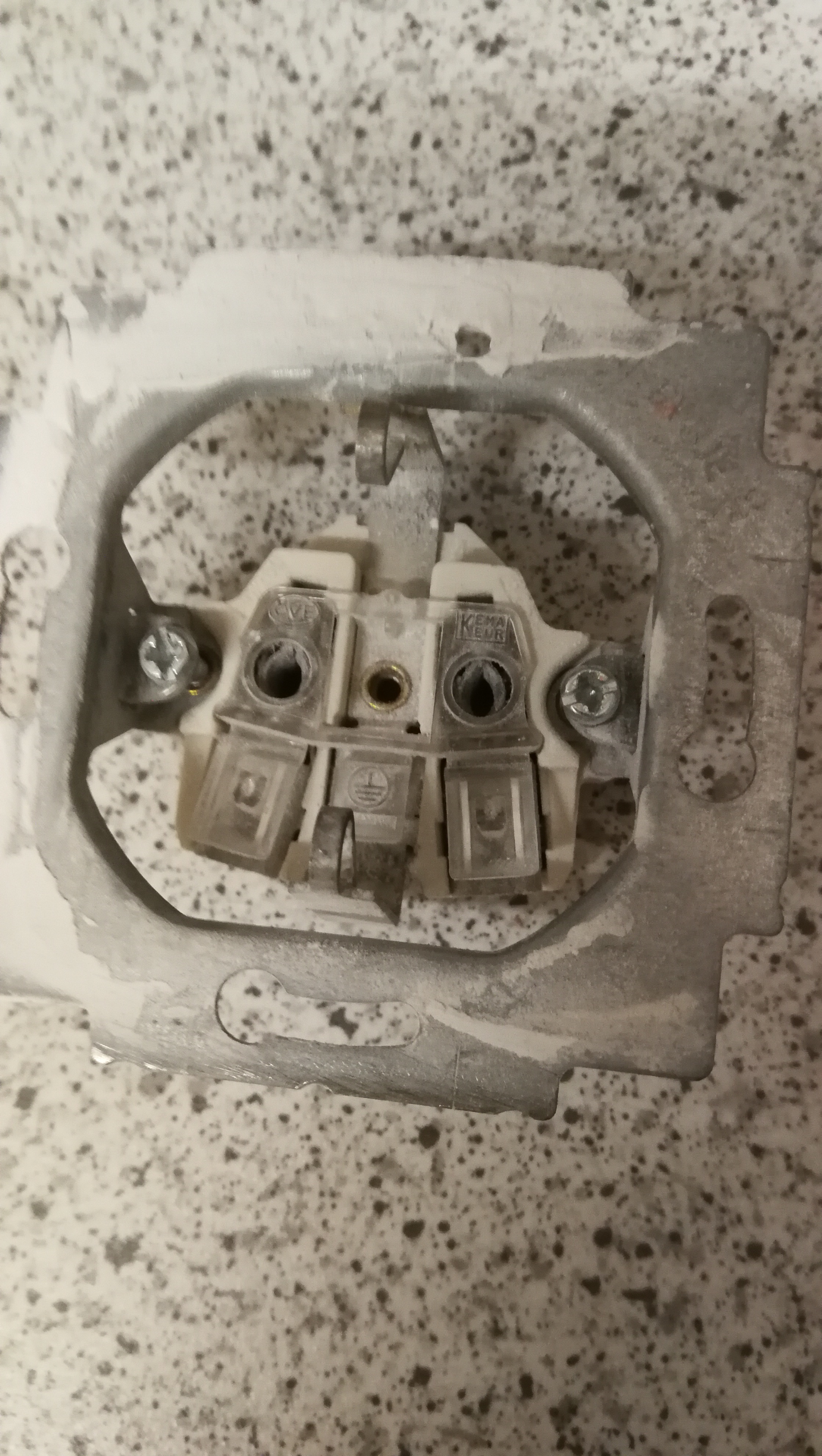 Nur leider musste ich feststellen, dass sowohl die Zentralscheibe in der Mitte als auch die Blinzentralscheibe rechts nicht durch die Schraube in der Mitte befestigt werden können, da die Unterputzdose keine solche Befestigung hat wie bspw. die Steckdose.