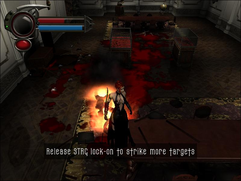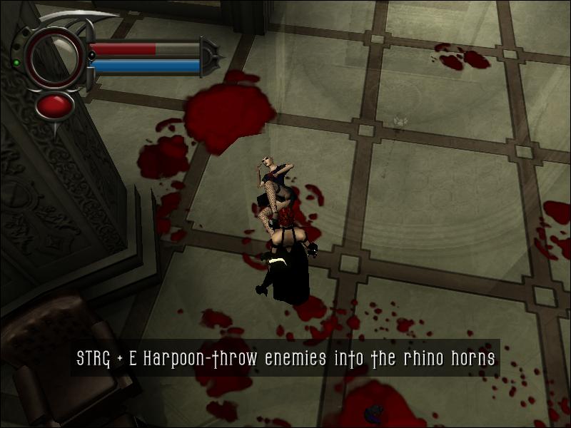 Die heldin ist schwer zu erkennen da sehr viel Blut vom gegner auf sie spritzt