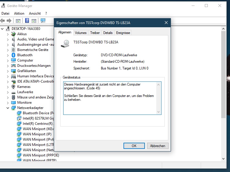 kürzlich habe ich den internen DVD-Brenner meines Lenovo T430 durch ein Blueray-Laufwerk (TS-LB23A) ausgetauscht. Dieses wird kurzzeitig von Windows 10 erkannt und kann auch verwendet werden. Jedoch wird es bei Nicht-Benutzung nach wenigen Minuten automatisch "ausgeschaltet" . Im Windows-Explorer sieht das dann so aus:
