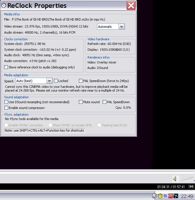 In einem anderen Thread wurde schon dazu geraten das Tool ReClock zu verwenden.