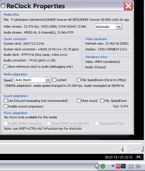 Wer kann mir sagen was ich einstellen muss, damit ReClock bei mir startet\läuft?
