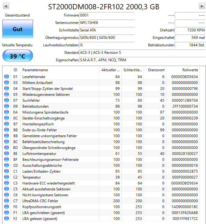 1x 1 TB 3'5er HDD seit über 6 Jahren in Betrieb Spiele/Filme
