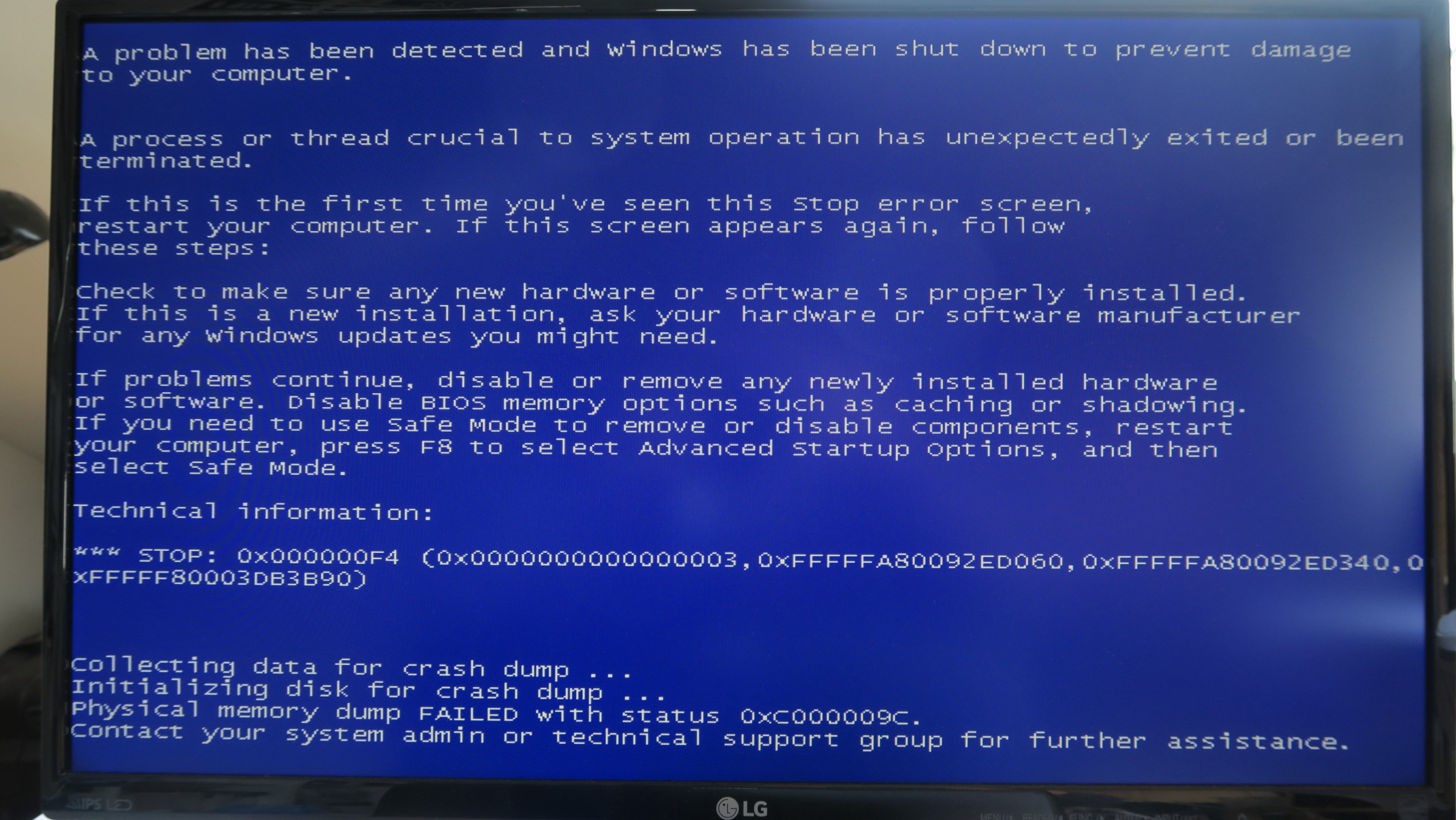 0x000000F4: CRITICAL_OBJECT_TERMINATION