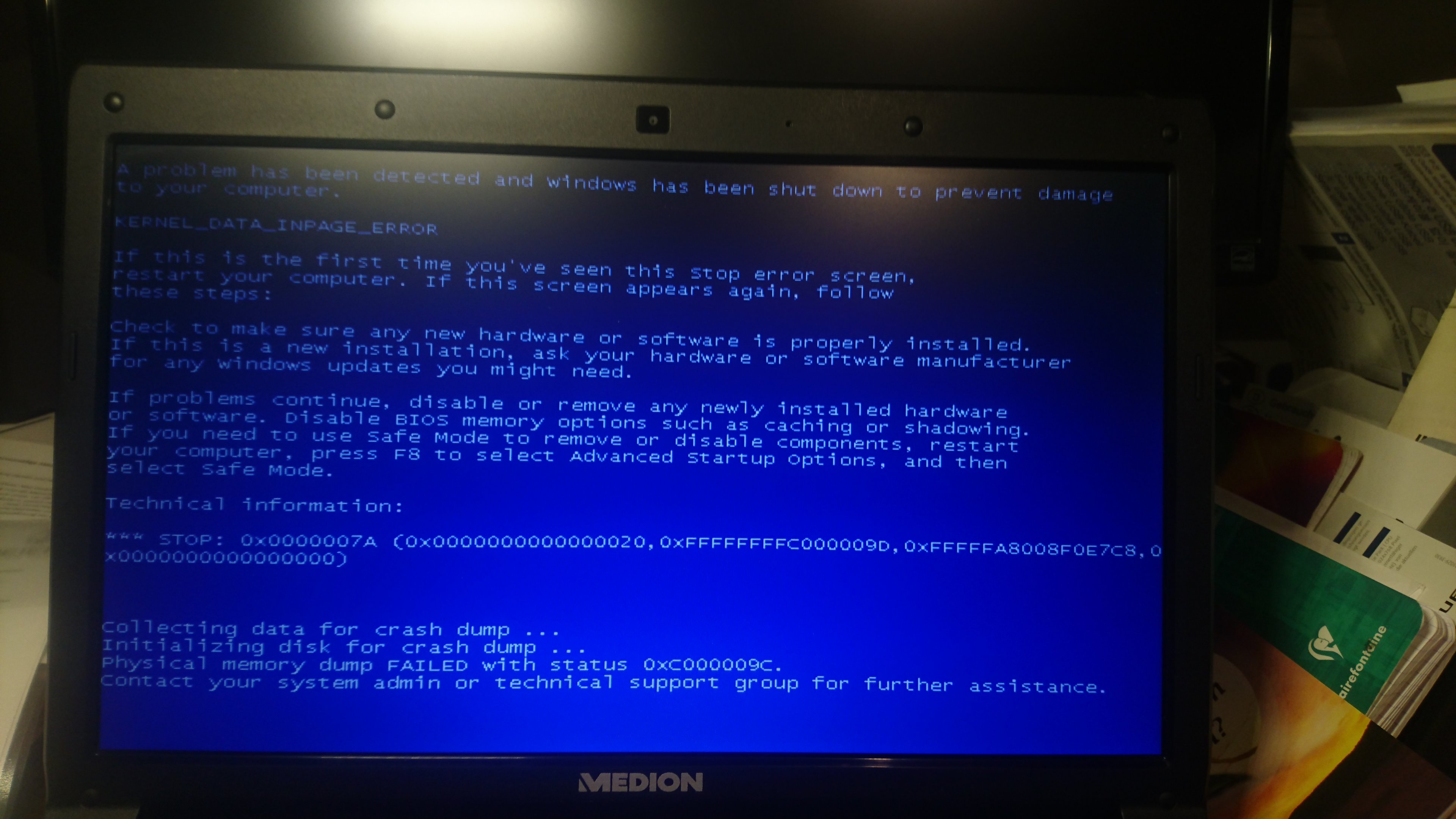 Einer der vielen Prozesse oder Threads die wichtig für die Systemfunktionen sind wurde unerwartet beendet.