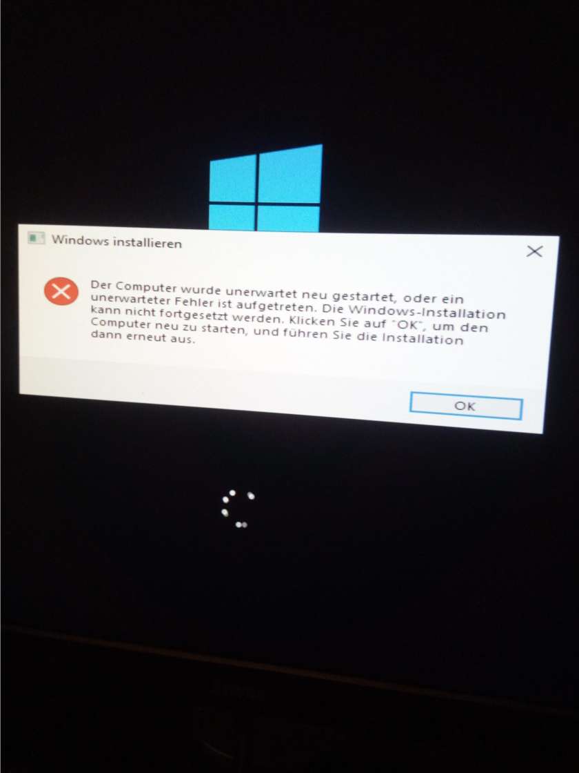hab dann windows neu aufsetzen wollen und festplatte formatiert .... es lässt sich nicht installieren