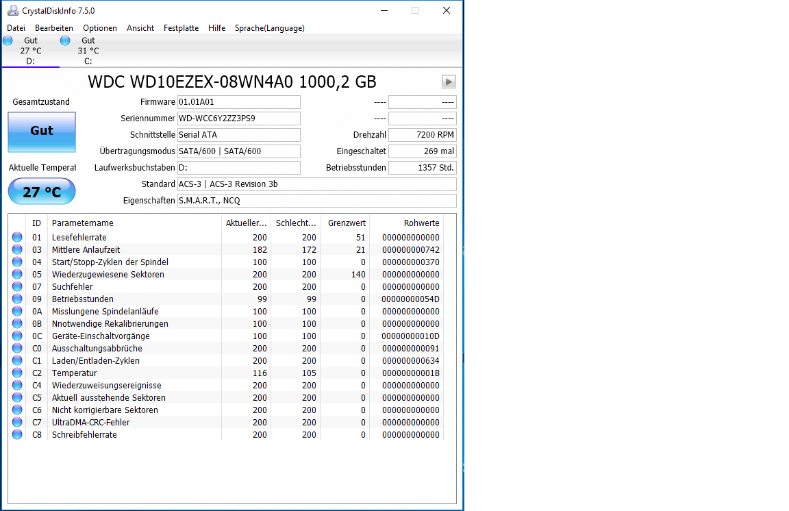 - chkdsk (auch über .cmd) -> kein Problem gefunden