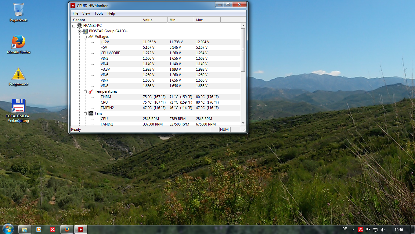 Die CPU Temp ist eigendlich viel zu hoch, Temp2 -> Mainboard bei 46 Grad, auch einwenig zu hoch!