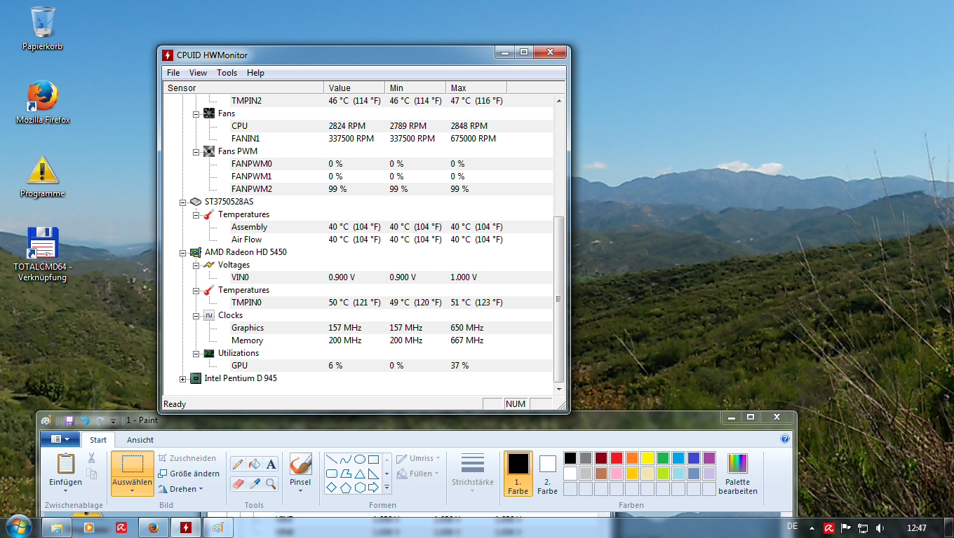 50 Grad -> GPU ist auch eigendlich ziemlich hoch, da sie im Idle ist.