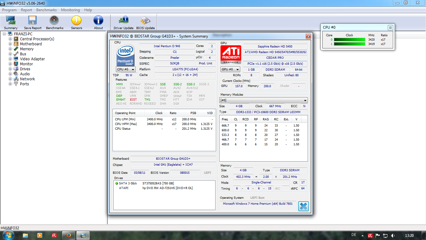 schon seid längerem mal weniger schlimm mal schlimmer ist eben wieder eingefroren dann neu start hab ein neues "foto"gemacht graphikkarte ist eine AMD Readom Hd 5450, es sind 2 lüfter verbaut und laufen beide.. cpu kühler wurde noch nicht getauscht ob das prob auch beim "offenen "zustand besteht weiss ich nicht noch nicht gemacht und danke fürn link aber welchern davon muss ich jetzt downloaden?