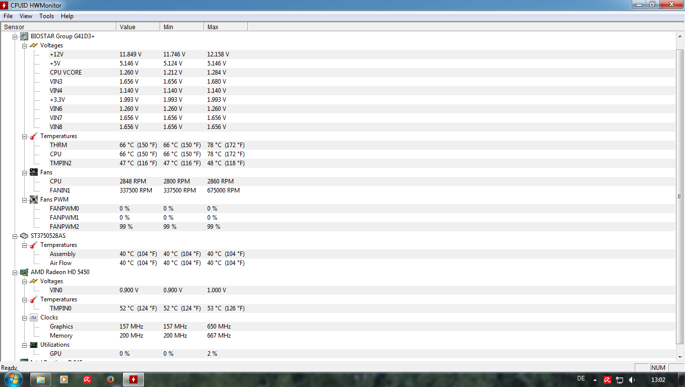 gut.. wie dem auch sei - poste mit dem Programm ruhig nochmal Deine Sensorwerte! Da offenbar keine genauen Werte mit dem anderen Tool zu sehen sind. (Fan1 über 300000 Umdrehungen pro Minute?)