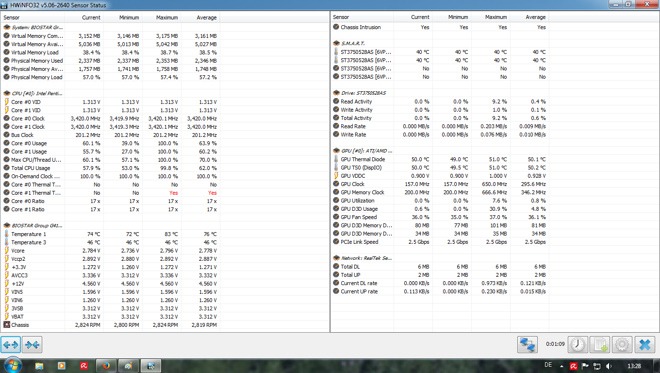 Auch ist die Temperatur der CPU für einen 775er Core2 mit 74°C irgendwie recht hoch.