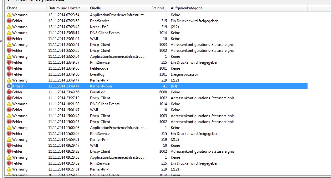 Frage woran kann es liegen? Ich vermute einen Hardwaredefekt (CPU/Mainboard und/oder Ram). Bin aber komplett unschlüssig wo ich suchen soll ^^ Der Kernel Power Fehler müsste der Reset gewesen sein.