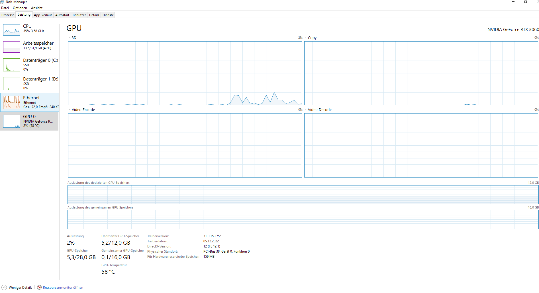 Eine weitere Sache ist mir aufgefallen im Taskmanager, und zwar im Spiel ist meine Grafikkarte auf 0% bis max 4% Auslastung und meine CPU Schwanken zwischen 40% bis 60%