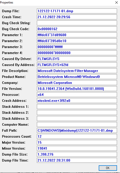Habe ihn im Anhang drin (Bluescreenview) und einmal die minidump datei