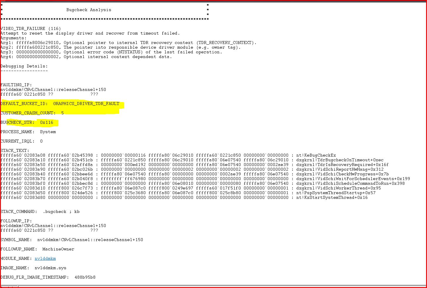 Vista-Debugger meldet nvlddmkm.sys als Verursacher.